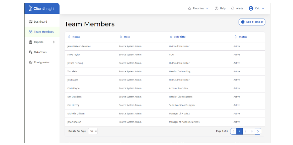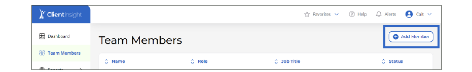 To add a new Team Member, select Add Member in the top right-hand corner of