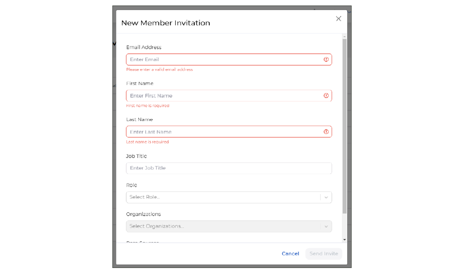 Team Member roles of Global Admin, Source System Admin, and Org Admin will