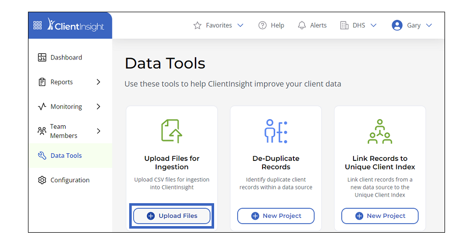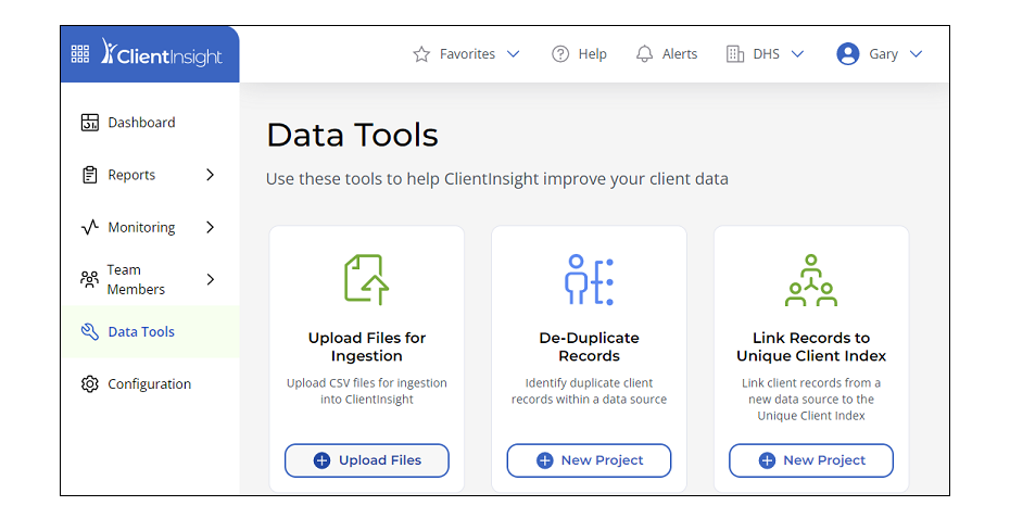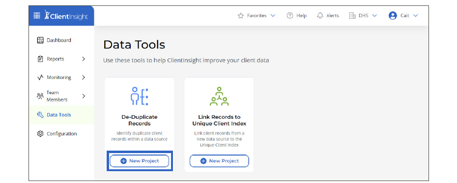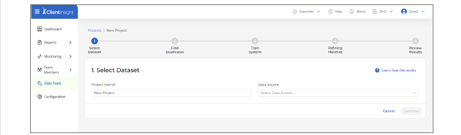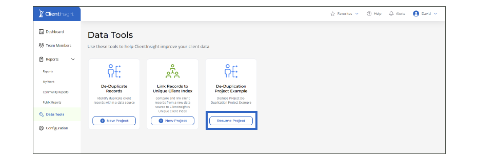 Once you start a new project, it will show up as a tile on the Data Tools page. If