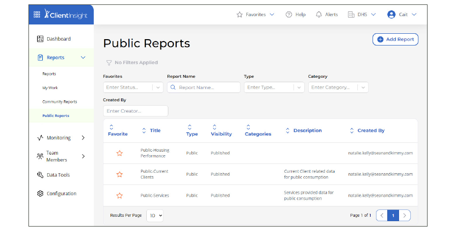 Public Reports are reports that have been published and made available for embedding in other applications or websites.