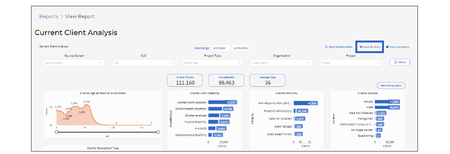 populate additional filters you can utilize. You can select Reset All Filters in the